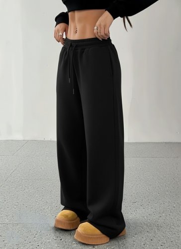 • Kadın yüksek bel lastikli bağcıklı geniş kesim dalgıç pantolon